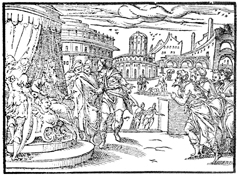 Description: Joseph introduces his family to Pharaoh, and they ask for permission to live in Goshen. Illustration by Pierre Eskrich (ca. 1550-ca. 1590).