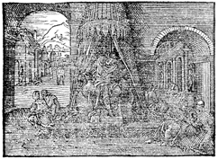 Description: The Pharaoh on his throne is in darkness. In the background the plague of darkness covers the land of Egypt but does not affect the Israelites. Illustration by Pierre Eskrich (ca. 1550-ca. 1590).