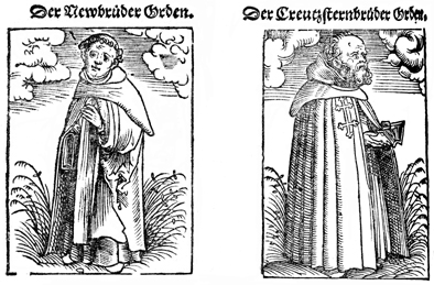Description: Newbruder and Crutzsternbruder Orders. This woodcut was created by Lukas Cranach the Elder.