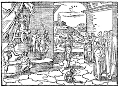 Description: After all of Pharaoh’s magicians and wise men (right) fail to explain the meaning of the seven fat and seven lean cows, and seven good and seven lean stalks, the cupbearer remembers Joseph and tells Pharaoh of his ability to interpret dreams. Illustration by Pierre Eskrich (ca. 1550-ca. 1590).
