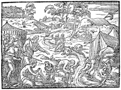 Description: The people wash their clothes in preparation to meet with God. Illustration by Pierre Eskrich (ca. 1550-ca. 1590).