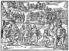 Description: The completed Tabernacle and the Ark of the Covenant is brought to Moses. Illustration by Pierre Eskrich (ca. 1550-ca. 1590).