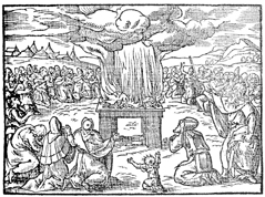 Description: The priests begin their ministry by offering a burnt offering unto God. Illustration by Pierre Eskrich (ca. 1550-ca. 1590).