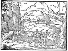 Description: Joshua and Caleb return from the exploration of Canaan and report its abundance to Moses. Illustration by Pierre Eskrich (ca. 1550-ca. 1590).
