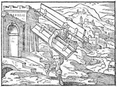 Description: Samson escapes a Philistine trap and carries away the city gates of Gaza. Illustration by Pierre Eskrich (ca. 1550-ca. 1590).