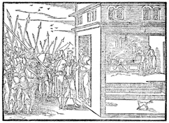 Description: Danites inquire of a Levite priest at the house of Micah. . Illustration by Pierre Eskrich (ca. 1550-ca. 1590).