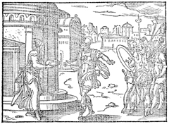 Description: David receives the consecrated bread from the priest Ahimelech at the temple in Nob. Illustration by Pierre Eskrich (ca. 1550-ca. 1590).