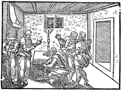 Description: Saul consults the medium at Endor to call up the spirit of Samuel. Illustration by Pierre Eskrich (ca. 1550-ca. 1590).