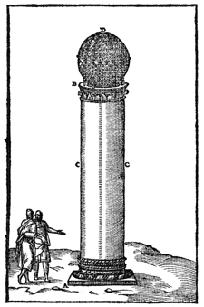Description: One of the two bronze pillars with ornate capitals. Illustration by Pierre Eskrich (ca. 1550-ca. 1590).