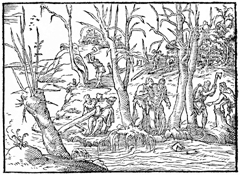 Description: Elisha makes an axehead float. Illustration by Pierre Eskrich (ca. 1550-ca. 1590).