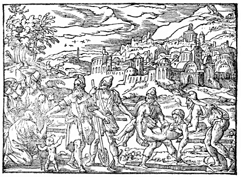 Description: Tobit buries a body at night. Illustration by Pierre Eskrich (ca. 1550-ca. 1590).
