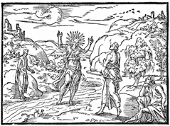 Description: Daniel’s vision of the angel Michael and two others. Illustration by Pierre Eskrich (ca. 1550-ca. 1590).