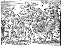 Description: Having been warned in a dream, Joseph and Mary took Jesus to Egypt. Illustration by Pierre Eskrich (ca. 1550-ca. 1590).