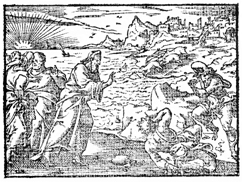 Description: Jesus commands the legion of demons to leave the demoniacs and to go into the pigs. Illustration by Pierre Eskrich (ca. 1550-ca. 1590).