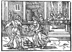 Description: Herod has John the Baptist beheaded at the request of Salome. Illustration by Pierre Eskrich (ca. 1550-ca. 1590).