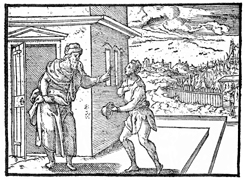 Description: The landowner sends his servant to the vineyard. Illustration by Pierre Eskrich (ca. 1550-ca. 1590).