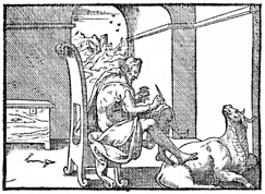 Description: A rendering of Luke writing his gospel with his attribute, the bull, at his feet. Illustration by Pierre Eskrich (ca. 1550-ca. 1590).