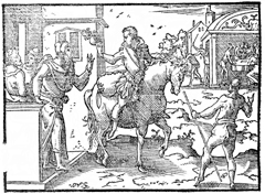 Description: The prodigal sets out with his inheritance. Illustration by Pierre Eskrich (ca. 1550-ca. 1590).