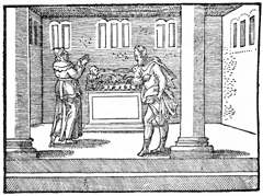Description: A Pharisee and a tax collector pray in the temple. Illustration by Pierre Eskrich (ca. 1550-ca. 1590).