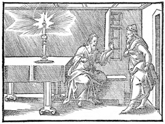 Description: Jesus converses with Nicodemus at night. Illustration by Pierre Eskrich (ca. 1550-ca. 1590).