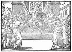 Description: Paul is brought before the proconsul Gallio. Illustration by Pierre Eskrich (ca. 1550-ca. 1590).