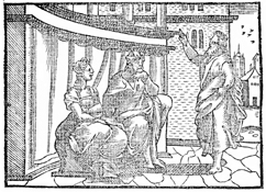Description: Felix and his wife Drusilla listen to Paul's defense. Illustration by Pierre Eskrich (ca. 1550-ca. 1590).