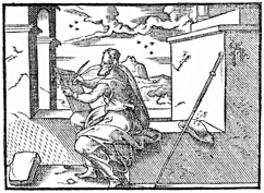 Description: A rendering of James, the brother of Jesus, writing his epistle. Illustration by Pierre Eskrich (ca. 1550-ca. 1590).