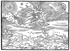 Description: At the sounding of the fourth trumpet the sun, moon, and stars are struck, and an angel cries out "Woe, Woe, Woe." Illustration by Pierre Eskrich (ca. 1550-ca. 1590).