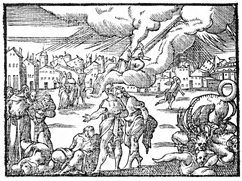 Description: The witnesses are killed by the beast and then resurrected to be taken into heaven. Illustration by Pierre Eskrich (ca. 1550-ca. 1590).