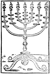 Description: Lampstand with branches and seven bowls made to look like almond blossoms.