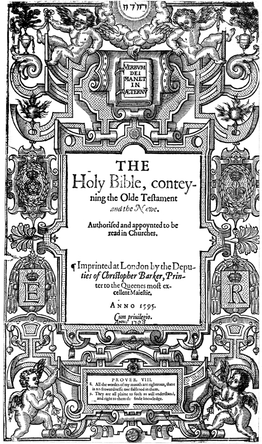 Description: This ornamental title-page border includes a Hebrew inscription at the head and a Latin one below, which reads "VERBUM DEI MANET IN AETERNU[M]" ("The word of God endures forever")..