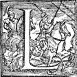 Description: An initial letter L with men on horses.