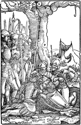 Description: Delilah cuts Samson’s hair, as the Philistines wait to seize him.
