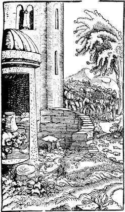 Description: The Philistines return the Ark of the Covenant (right) after it causes the destruction of the idol of Dagon (left).