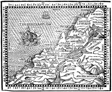 Description: A map of the Holy Land depicting several biblical cities and places.