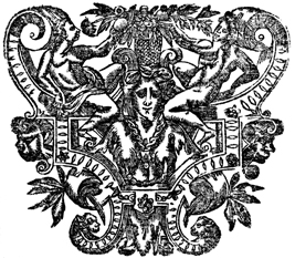 Description: A bust flanked by two figures reaching for fruit in a tree.