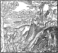 Description: This woodcut depicts scenes from the life of Jesus including the annunciation, the proclamation of his birth to the shepherds, the crucifixion, the resurrection, and the ascension.